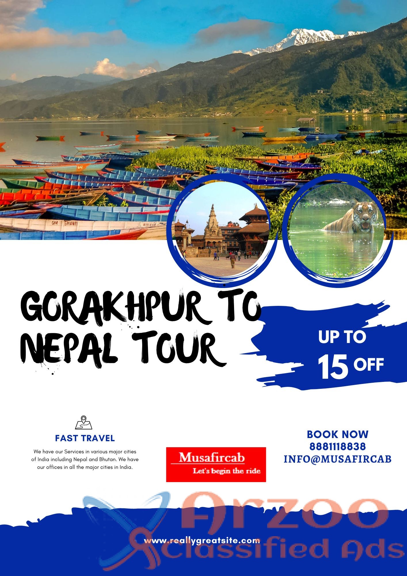Get your Nepal vacation package with Musafircab at the verycheapest cost. You can visit many more places like Pokhara, Kathmandu, Lumbini,and Chitwan National Park—the type of activity you can do in Nepal. Nepal offers a unique and enriching travelexperience for those seeking adventure, cultural immersion, and spiritualawakening amidst its Himalayan views—Gorakhpur to Nepal Tour Package, NepalTour Package Cost from Gorakhpur, Gorakhpur to Nepal Holiday Package. If youhave any questions, please call or WhatsApp us at +91-8881118838. Our executiveis available 24*7 to help you in planning your trip.