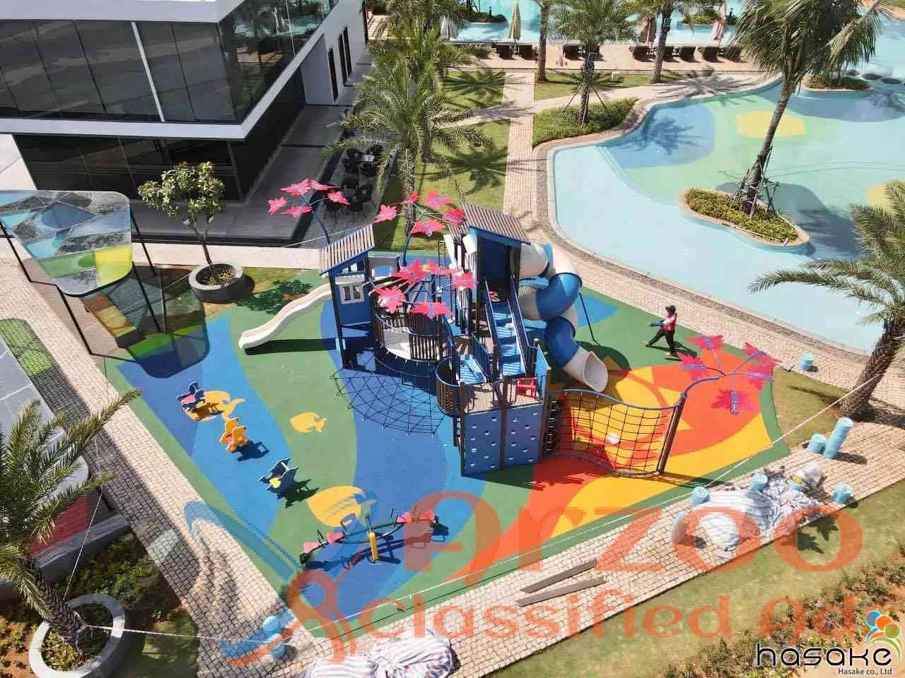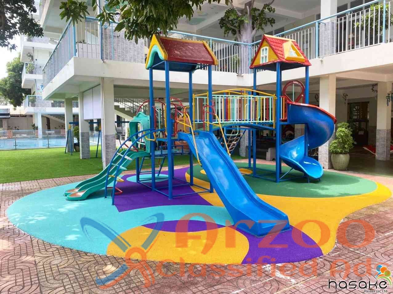 Hasake Play provides customize in the design, supply and installation of outdoor and indoor playground equipment with EPDM flooring for children’s playground equipment and safety flooring while ensuring creativity, interactive and safety aspects are incorporated in all our designs. Our range of products include integrated play sets, swings, seesaw, various spring riders, slides, kids play equipment, schools playground equipment, rope play equipment, outdoor fitness equipment, water park play equipment, garden furniture, stainless steel custom made benches, stainless steel benches, wooden seats, picnic tables, dustbins, gazebos and shelters. We also specialize in safety flooring for playground such as EPDM, interlocking mat and rubber tiles. Our playground equipment come in various pre-design or custom made which are suitable for public parks, residential parks, schools, hotels, shopping malls and various public amenity areas. Safety is our priority and our quality is our assurance. Contact us for more information at info@hasakeplay.com.vn
